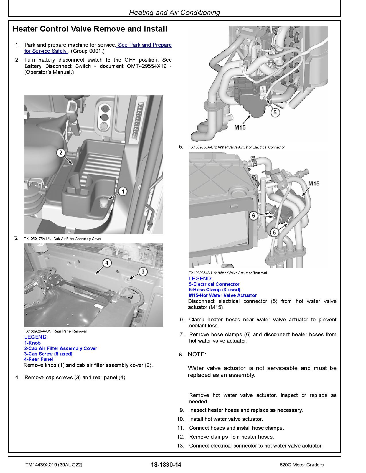 John Deere 620G and 622G Motor Graders (SN. from C000001, D000001) Repair Manual (TM14439X019)