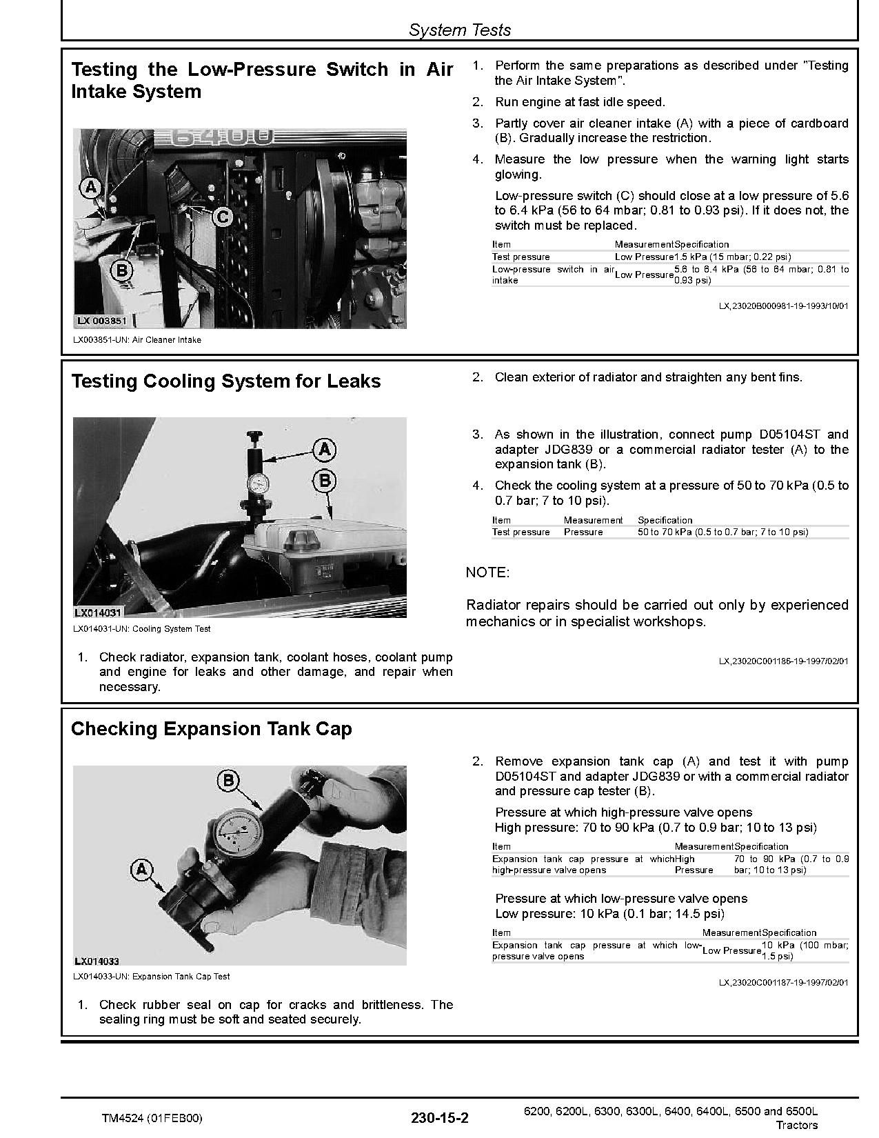 John Deere 6200, 6200L, 6300, 6300L, 6400, 6400L, 6500 and 6500L Tractors (North America) Operation and Test Manual (TM4524)