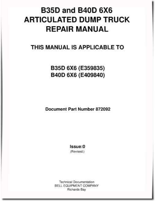 BELL B35D (PIN: E359835___) and B40D (PIN: E409840___) 6x6 Articulated Dump Trucks Repair Manual (872092)