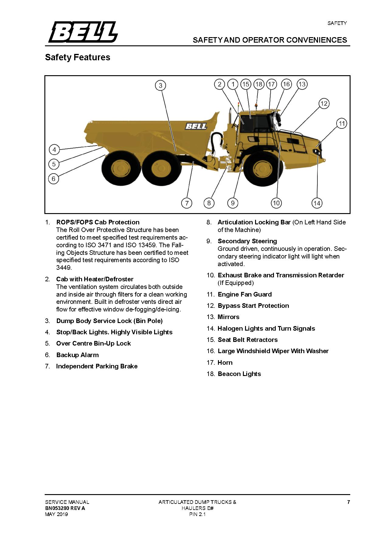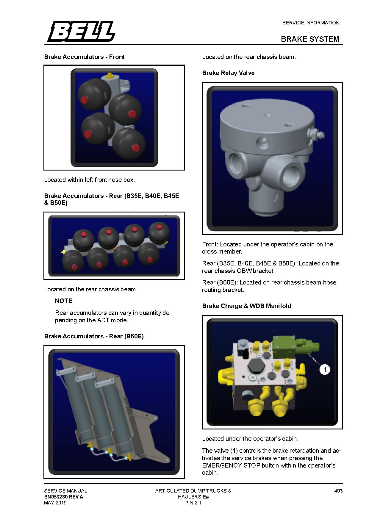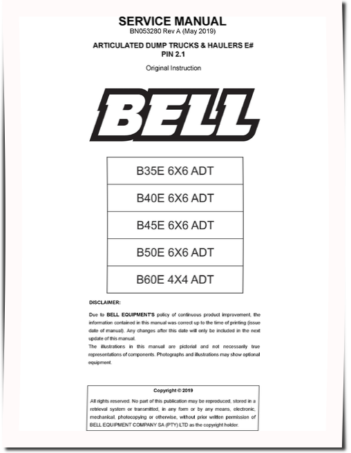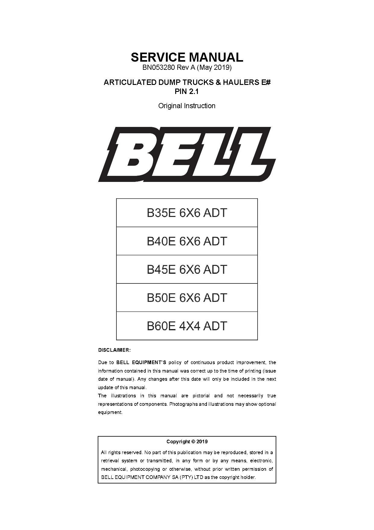 BELL B35E 6x6, B40E 6x6, B45E 6x6, B50E 6x6 and B60E 4x4 Articulated Dump Trucks Service Manual (BN053280)