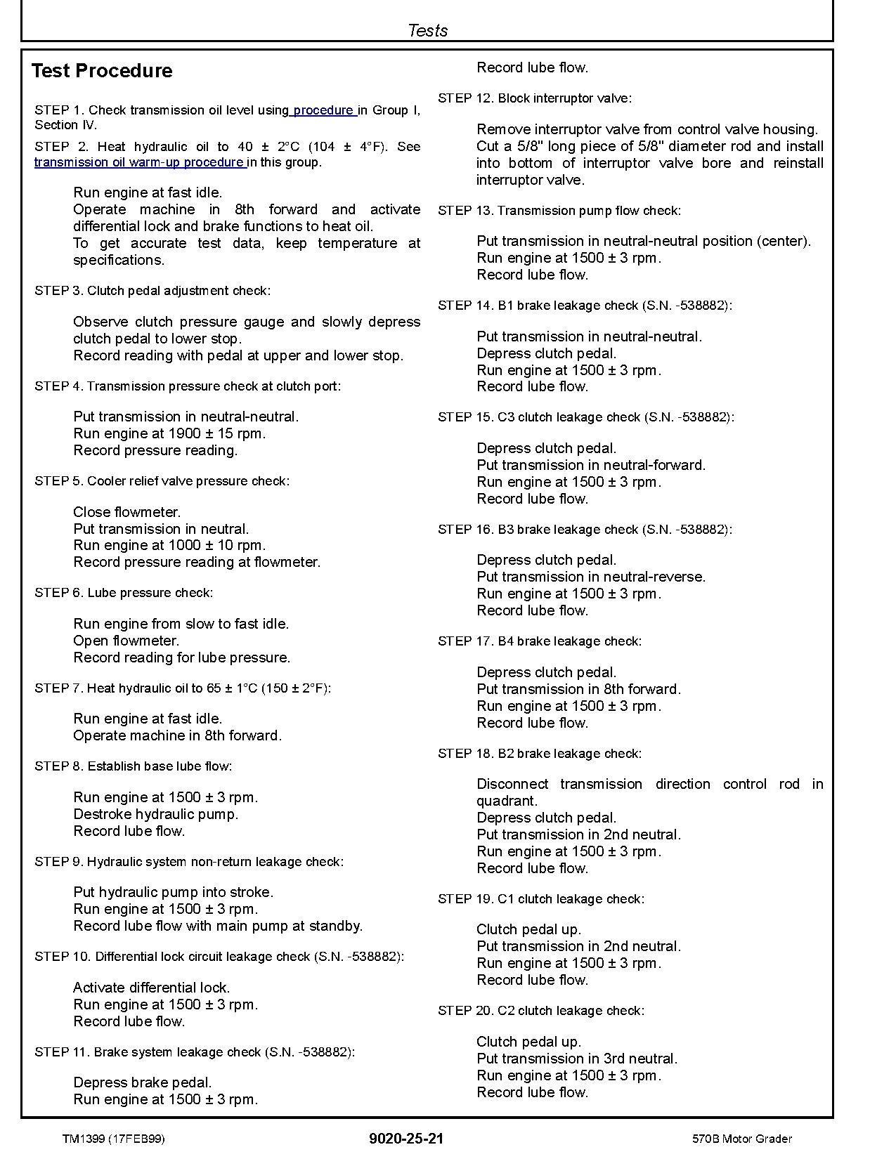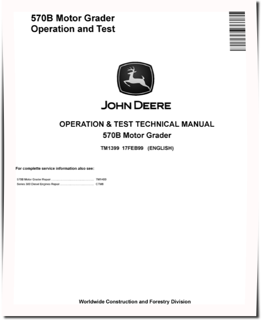 John Deere 570B Motor Graders Operation and Test Manual (TM1399)