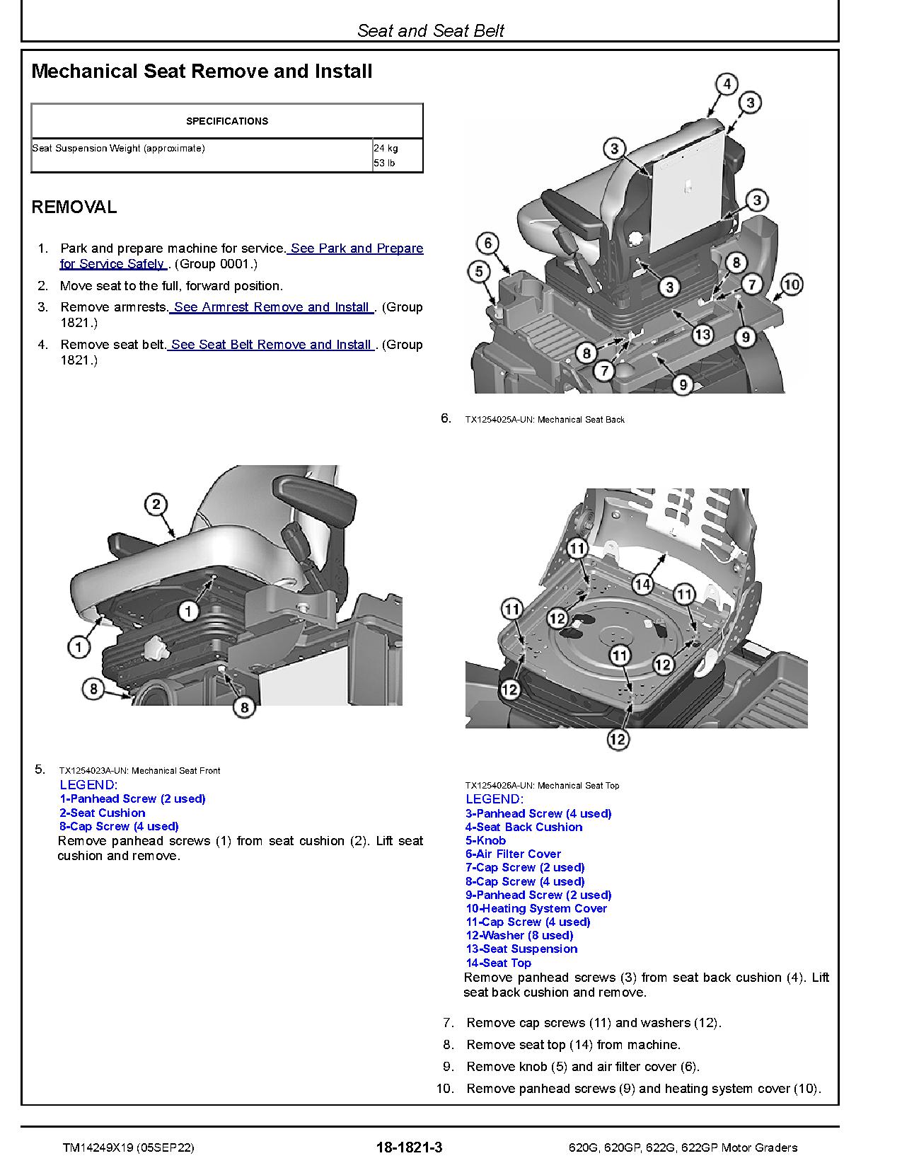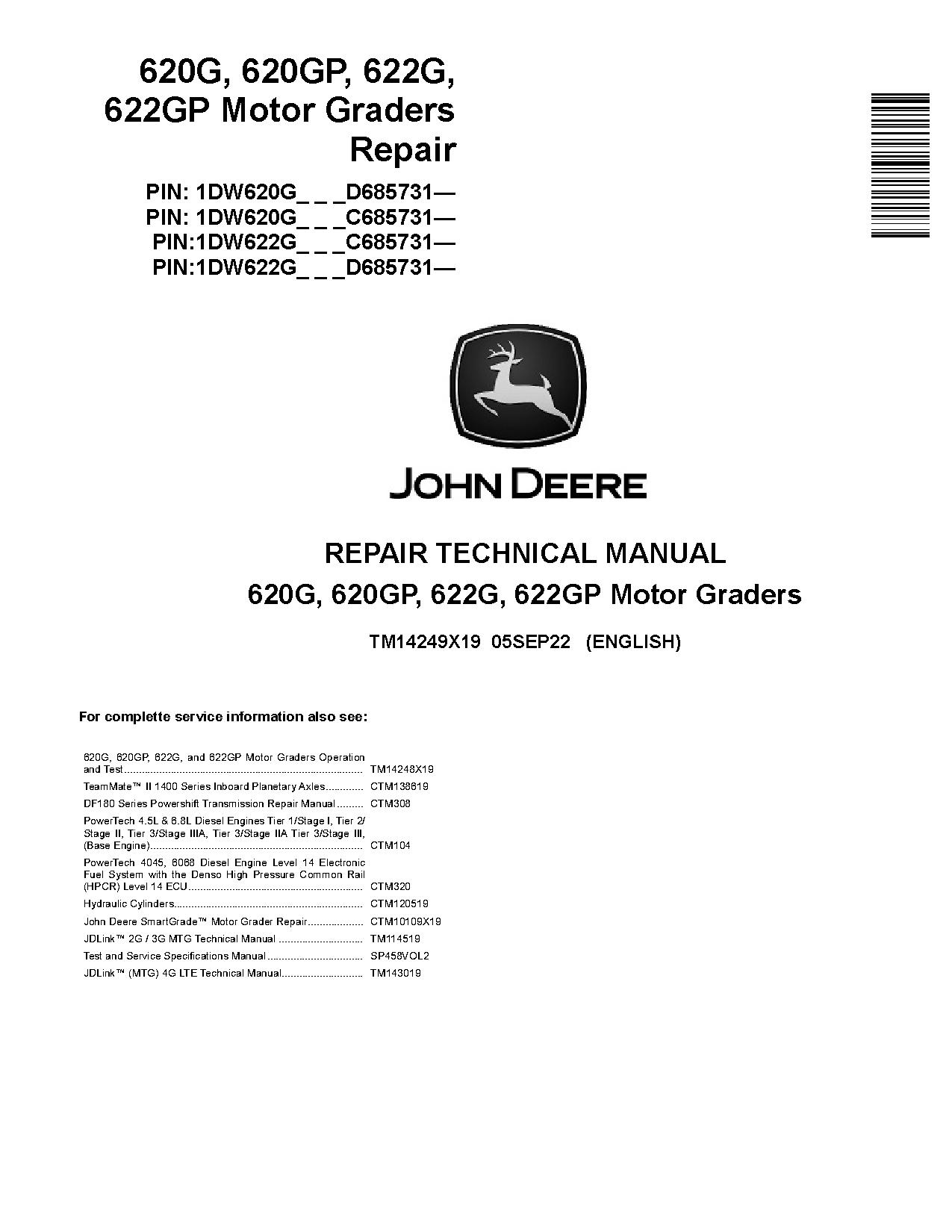 John Deere 620G, 620GP, 622G and 622GP Motor Graders (SN. from C685731, D685731) Repair Manual (TM14249X19)